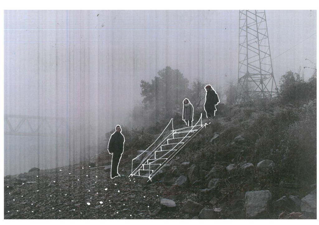Nous, Gap Gamers, nous nous sommes retrouvés ce matin dans le brouillard du port du Rhin. Après un thé à la menthe, nous défions le froid glacial. Nous commençons notre balade. Une frontière spatiale se dessine : le chemin de fer. Nous passons au-dessous par un tunnel pour piétons et arrivons dans un espace résultant. Il est bordé par le chemin de fer, le Rhin, et un entrepôt pour les trains de marchandises. Il y a trois maisons, dont deux abandonnées. La plus grande contient de nombreuses ressources : transats, casiers et vieux documents laissés là. Une petite plage se forme au-dessous, en marge du Rhin. En revenant à notre école, nous parlons de nos impressions : le coin de la plage nous séduit. Peut-être que nous allons travailler sur la scénographie.