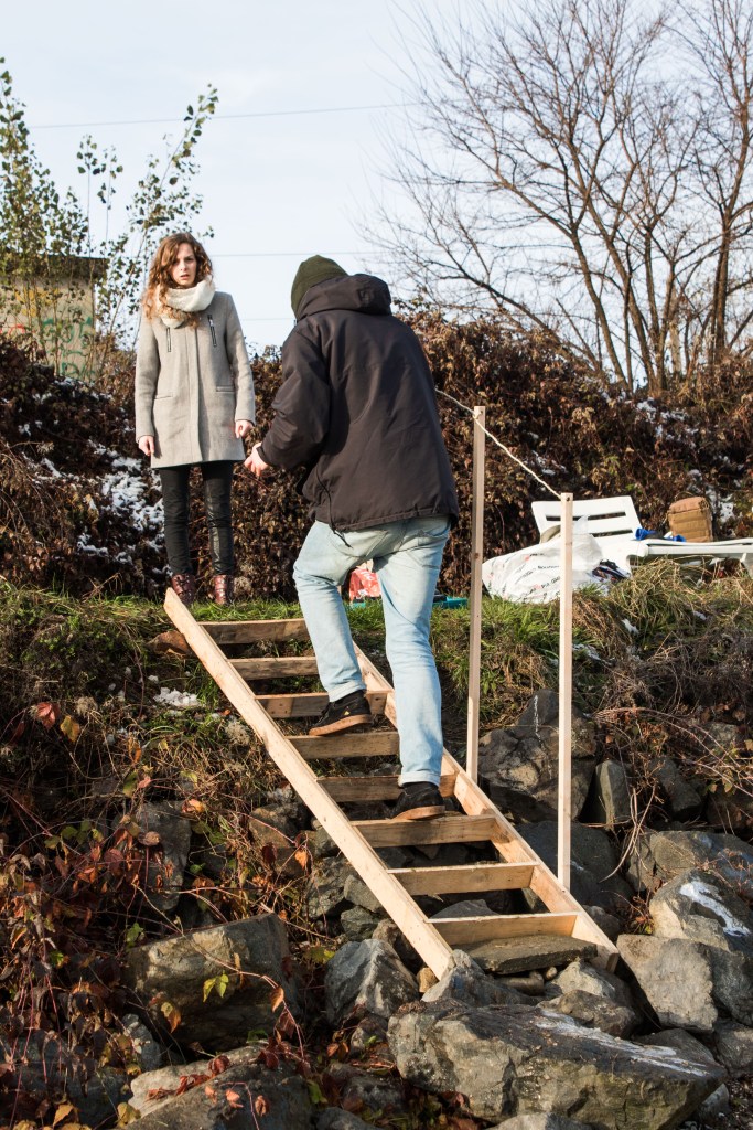 Le froid. C’est dans une atmosphère glacée que nous commençons notre journée au port du Rhin. Plus nous arrivons au bord de la plage, plus l’hiver revendique sa présence. Au milieu du brouillard et de la neige nous prenons des mesures de quelques endroits et prenons des photos pour nos cartes postales. Nous balayons l’espace afin de localiser l’endroit où nous installerons nos modules pour la chasse au trésor. Cet après-midi, nous poursuivons et finissons les prototypes qui seront utilisés comme cache, un support pour les cartes postales et la canne à pêche. De plus, nous choisissons et sélectionnons des photos afin que nous puissions préparer les fichiers pour imprimer les cartes demain dès notre arrivée. À la fin de la journée, nous nous interrogeons sur la plage et ses équipements. Nous avons besoin de trouver de petits parapluies cocktail pour la mise en scène que nous projetons sur la plage. Le Gap Game prend peu à peu forme. Avant de partir, nous faisons un point sur les différentes choses que nous allons faire demain : prototype d’une échelle pour faciliter l’accès à la plage, les différents indices, et bien sûr, sa carte.