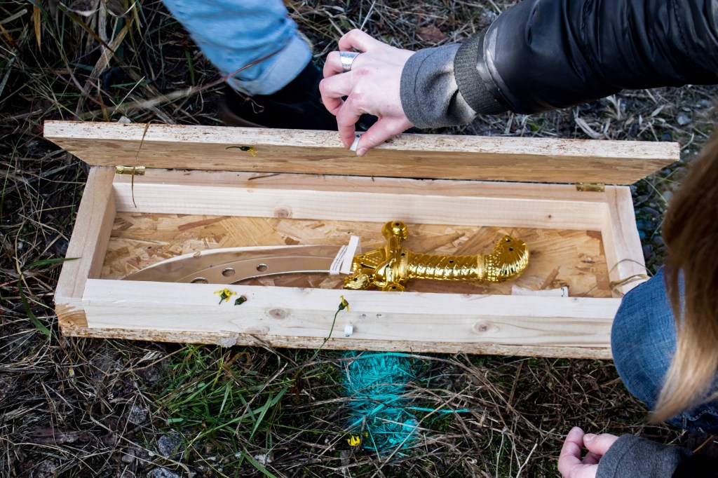 Dernier jour de production. Ce matin, nous traçons des plans pour construire une échelle. Un passage à travers deux niveaux, pour donner un accès et découvrir un espace : la plage où se trouve le jeu. C’est notre interstice, la limite tangible du lit du Rhin. Nous construisons également une étagère pour notre vendeur de glaces faites à l’eau du Rhin. Nous terminons la matinée par la construction d’un coffre-fort de pirate. Comme nous travaillons rapidement, nous prenons une pause pour manger et réfléchir à ce qu’il reste à faire. Dans l’après-midi, nous travaillons sur le parcours pour la chasse au trésor. Nous définissons l’ordre des modules qui permettront de trouver les différents éléments de l’espace. Nous créons ces différents indices pour guider pas à pas les personnes qui veulent jouer avec nous. Nous imprimons nos cartes postales : certaines d’entre elles sont juste un leurre avec l’inscription « Ce n’est pas une carte ». Seule une carte cache un indice. C’est ainsi que commencera notre jeu. Chargeons la voiture. Nous sommes prêts à jouer !