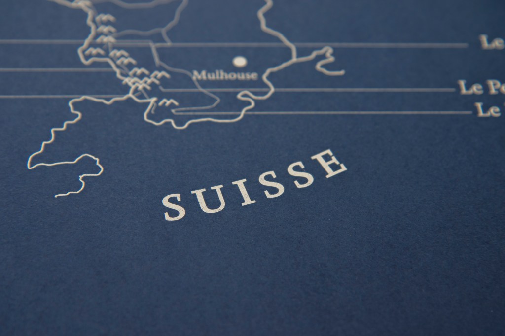 Photo de l’un des carnets photographiques sur le fond d’un tracé issu de cette grande carte, photographie