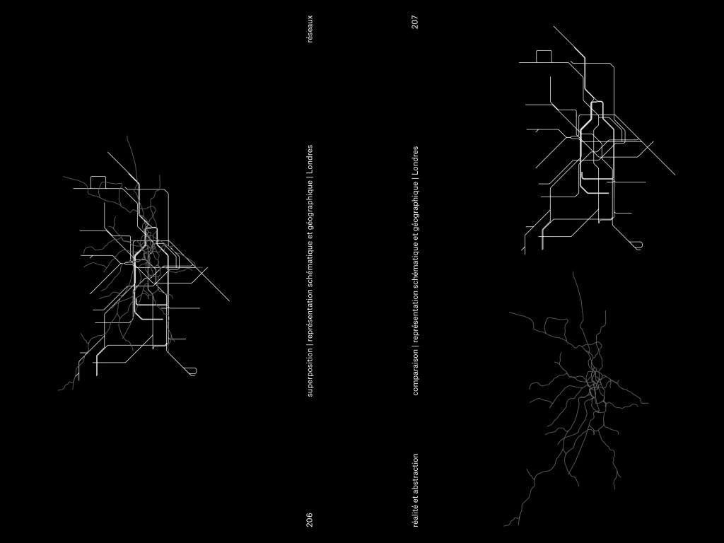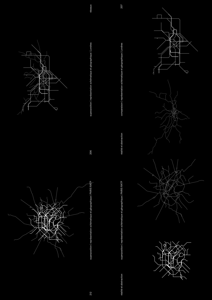et de plan en plan, sans pour autant en percevoir les contours. La carte de transport par son omniprésence banale imprime un portrait de la ville invisible. Cette grande mise en comparaison nous ramène à des évidences oubliées, celle que toute image est une construction et que toute construction a un ouvrier et un maître d’œuvre.